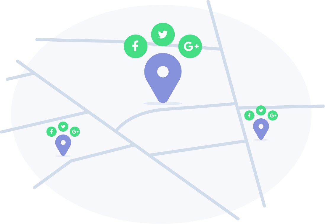 Create & manage social media channels that match all of your franchise locations. Customize address, phone, email, location specific hashtag etc.